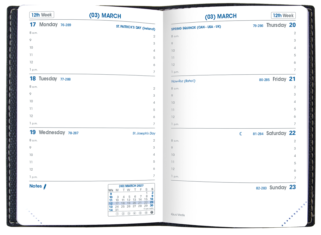 - Special monthly notes feature — two blank pages at the beginning of each month
